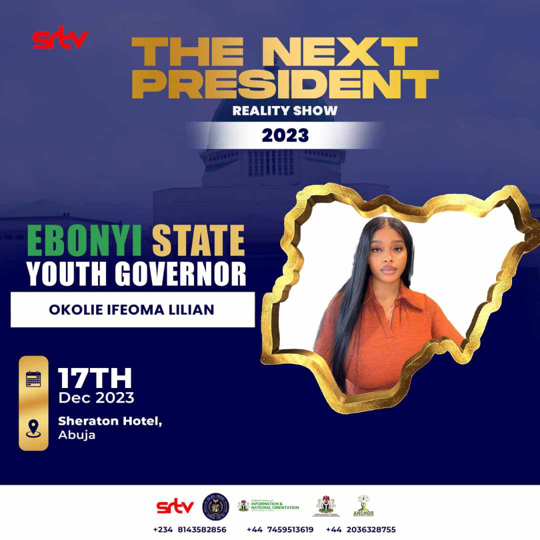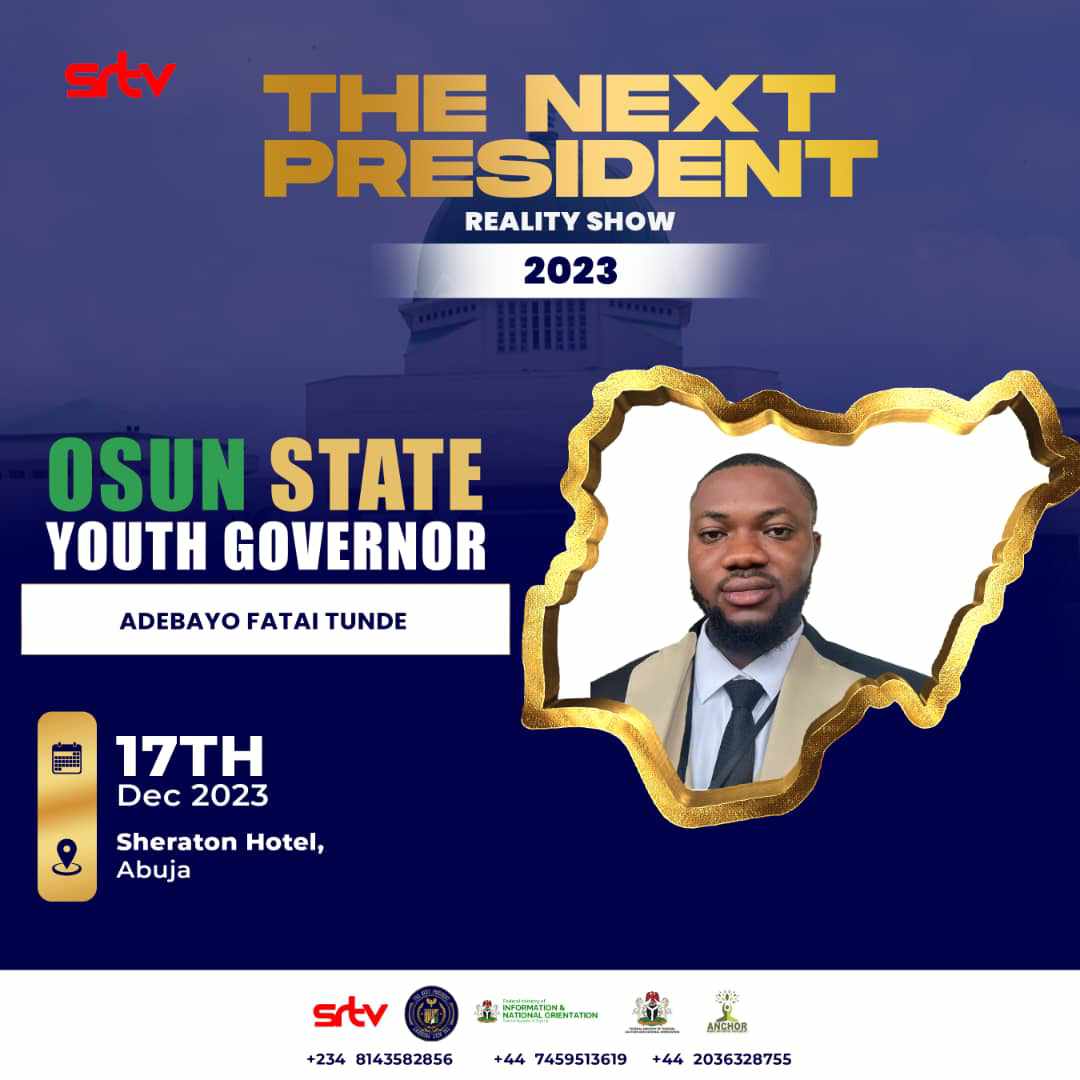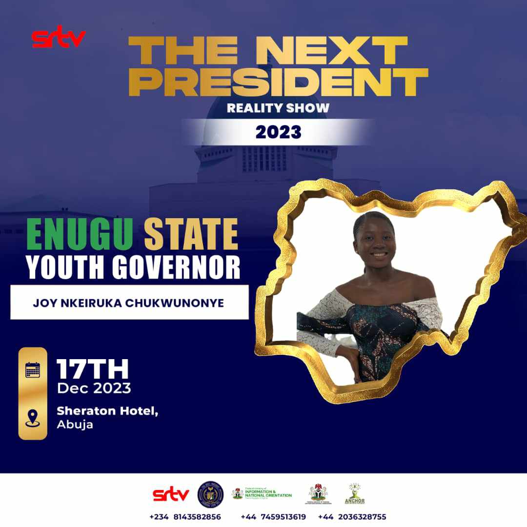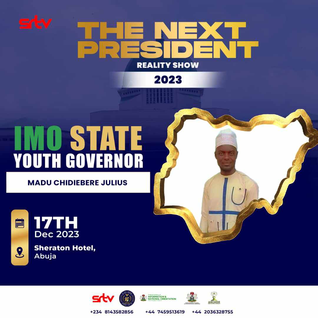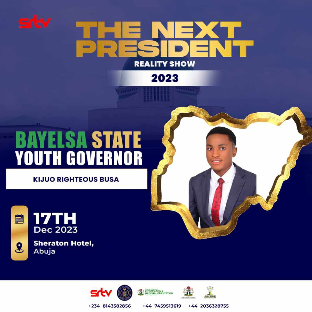 Meet the Youth Governors running for the office of the Youth President in the 2023 SRTV Next President TV Reality Show taking place in Abuja from the 10th to the 17th of December
