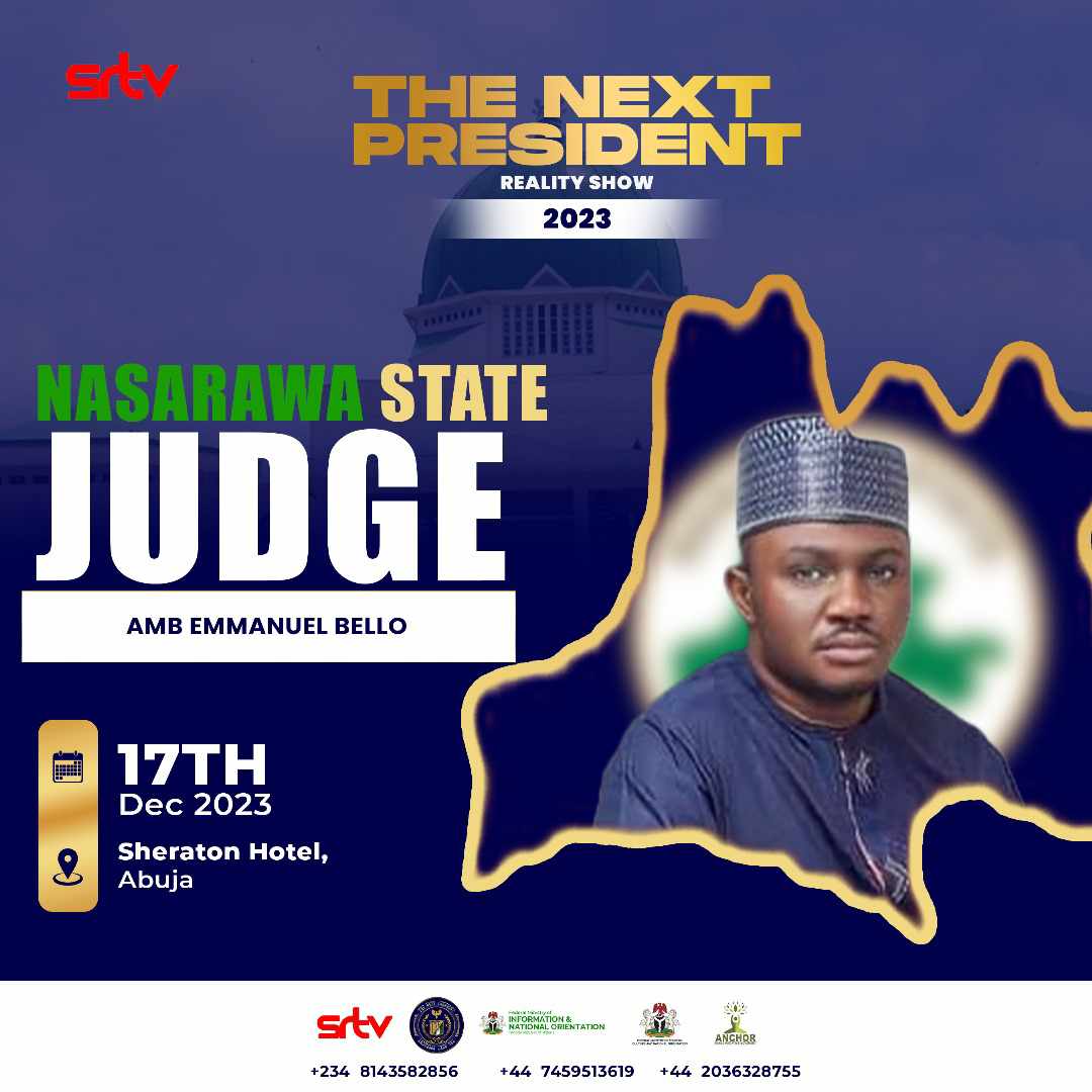 SRTV is thrilled to announce the highly anticipated show “The Next President Reality Show,” set to commence tomorrow, 10th December, 2023. The show will run until 17th December, 2023, showcasing the vibrant and diverse contestants representing all 36 states of Nigeria, including the Federal Capital Territory.